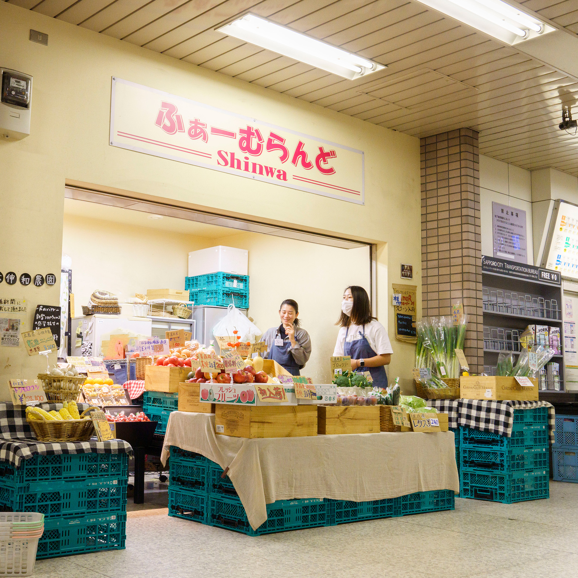 私たちの直売所は札幌市内では珍しい、札幌市営地下鉄の美園駅の中にあります。